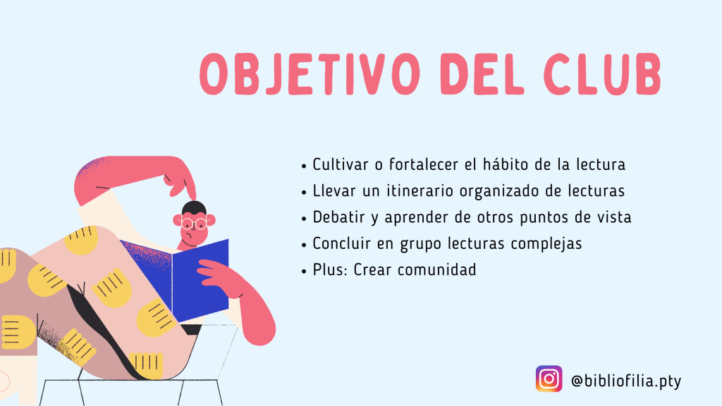 El Club es un espacio donde prima el respeto, el entusiasmo por la lectura, la diversidad y la curiosidad. En el Club somos bienvenidos todos, no importa si leemos un libro al mes, o uno por semana. Este grupo se enriquece de la experiencia personal, la interpretación de cada uno de nosotros y algo de investigación… Ahh, y es gratis, sólo tienes que traer tu libro y estás preparado/a para participar.